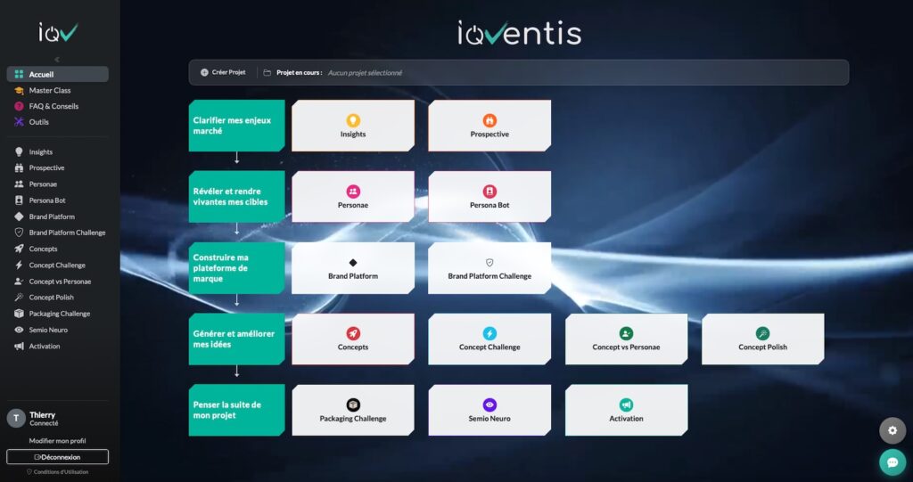 Aujourd’hui, Iqventis intègre des modules de génération d’insights, de prospective, de personas, de concepts, de challenge et de finalisation de concepts, de formulation et de challenge de plateforme de marque. S’y ajoutent un volet packaging, pour apporter un premier niveau d’analyse et d’optimisation en amont des tests consommateurs, ainsi qu’un module d’analyse de visuels, de communication ou de homepage, que nous appelons sémio-neuro.